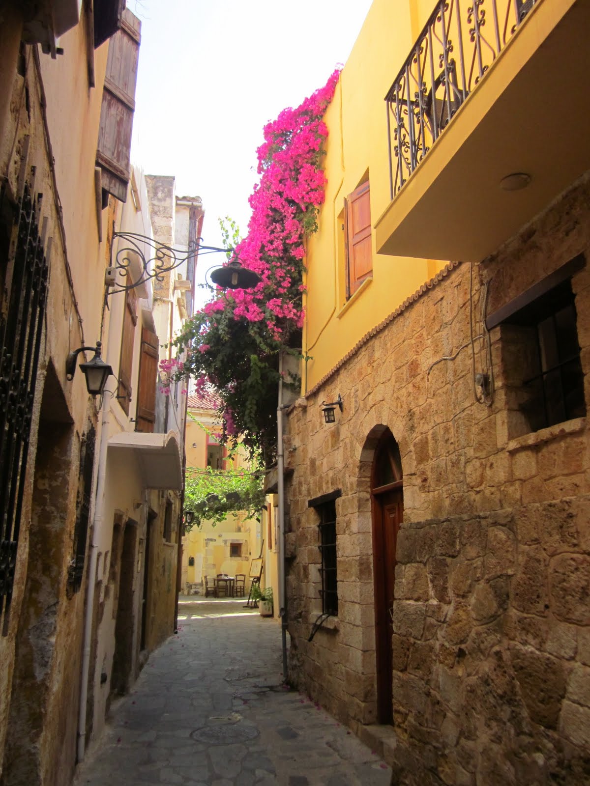 After a short flight and a long bus ride, we ended up in Chania, a city on the north coast of Crete. It had been a Minoan civilization, later taken over by the Venetians, then later by the Turks, then I think maybe the Venetians again, and eventually it became a part of Greece. Because it's so close to North Africa and was an important port city, it was hit hard by bombing during World War II. Many of the buildings have not been rebuilt, so as you wander through the old city, you find a lot of outdoor restaurants or gardens that were made out of ruins. There was one particular local garden in a bombed out building that was beautiful.